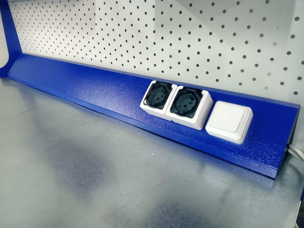 Сервисная панель применяется для доукомплектования верстаков. Не входит в стандартную комплектацию верстаков и приобретается отдельно. В комплектацию входят: выключатель-1 шт., розетка - 2 шт., провод - 1 м., вилка 1 шт.